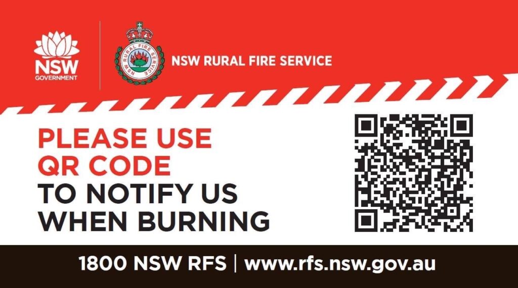 1.You must notify the NSW RFS at least 24 Hours before you light the fire.