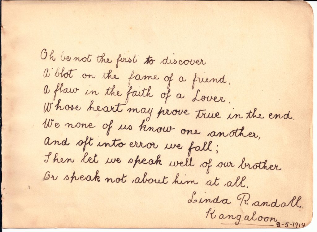 Over the years she met many friends and family who took the time to write in Sarah’s autograph book, a common fad in those days. Here are a few of the many touching messages for you to enjoy.
