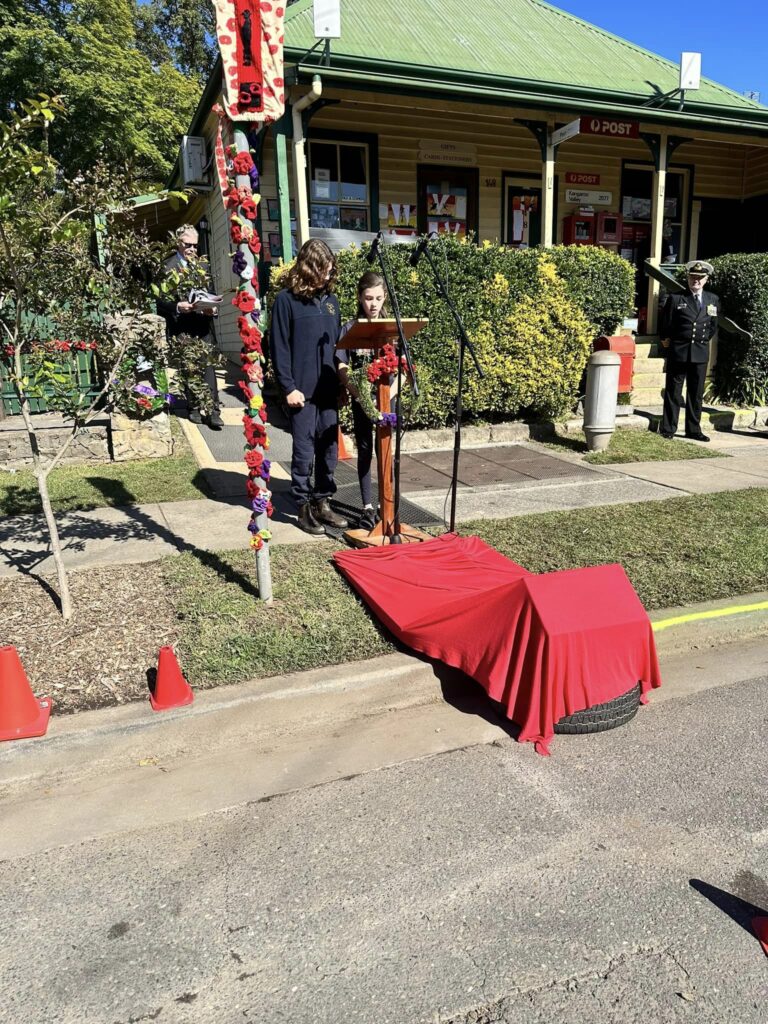 We are very proud of our students’ involvement in the Kangaroo Valley ANZAC Day service this year with many of our students attending to take on roles during the service. We would like to thank Gayle Harvey for working with our Year 6 students to prepare a wreath for ANZAC Day and talking with our students about their roles on the day.  Our K-2 students read the story of ‘ANZAC Ted’ and created an artwork with a description, while our 3-6 students researched the Bombing of Darwin in the lead-up to ANZAC Day to display in the shop fronts. Thank you Joan Bray for attending our school ANZAC Day Assembly with a number of special guests to talk to our students about the meaning of ANZAC Day.