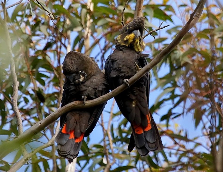 With help from Carla Jackett from Birdlife Shoalhaven, a team of ten volunteers started inspecting woodlands where the black oaks, Allocasuarina littoralis, are common. Of our first six sites visited, we found 40 trees showing signs of recent feeding. And Bingo! Return visits to these found two or three Glossies feeding at 2 sites. How good is that!