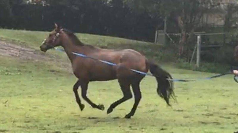 As the stock are slowly stringing, Clancy rides behind them singing,